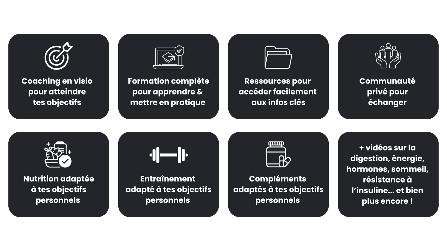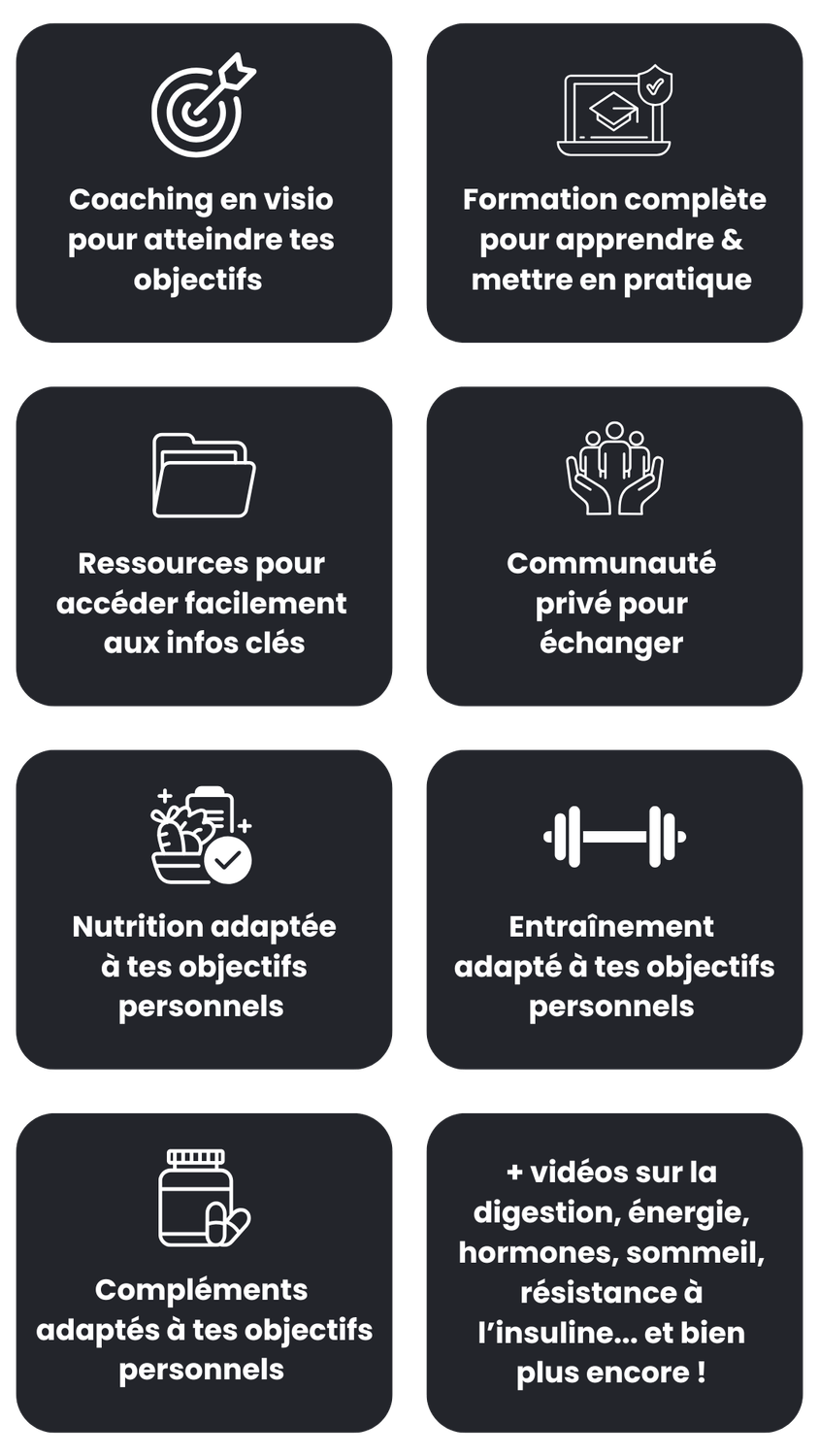 Tout ce dont tu as besoin pour transformer ton physique et maintenir tes résultats dans le temps.
